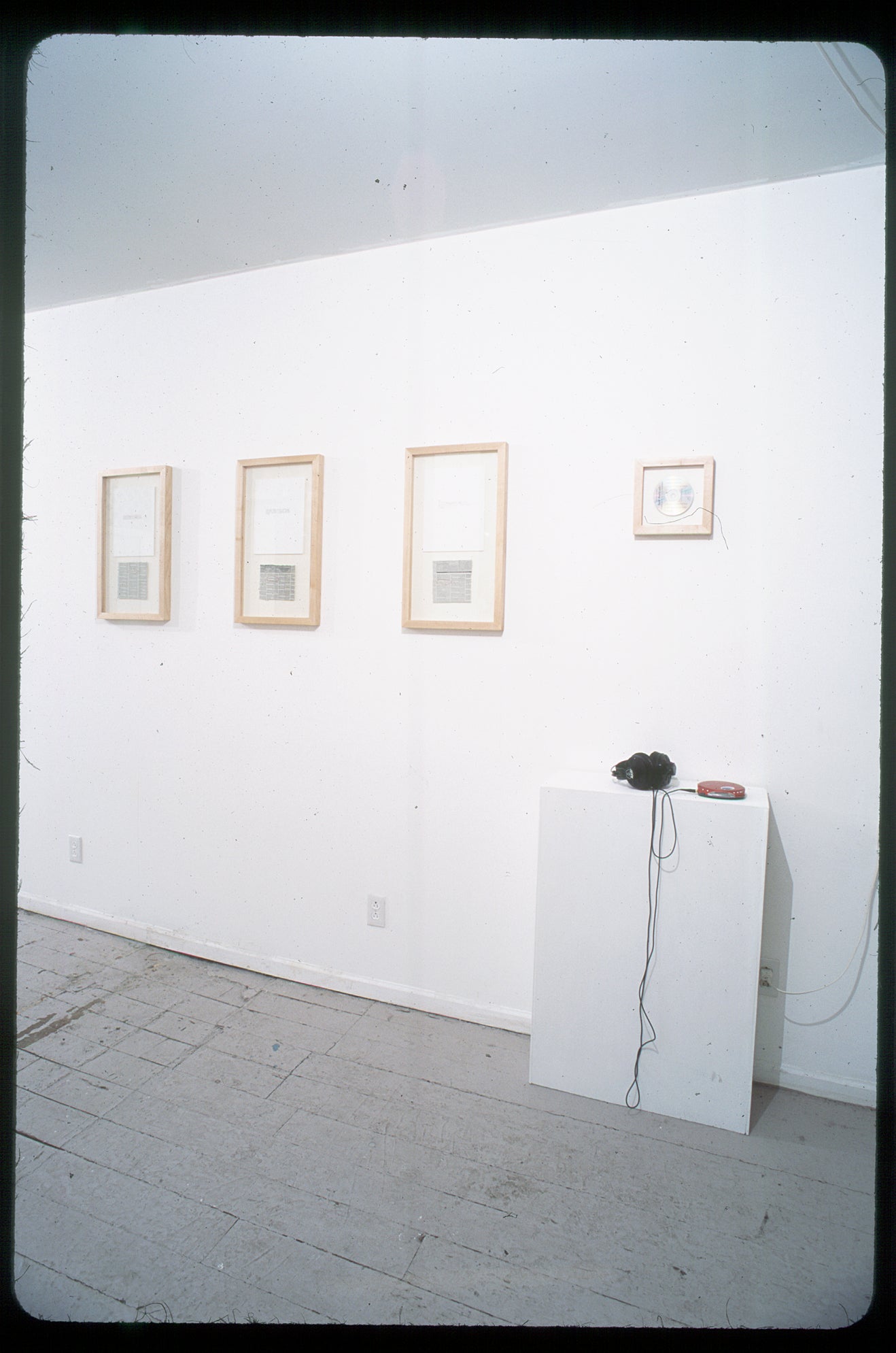 The hand-typed draft advertisements with copy corrections were reproduced as archival silk screen prints. The advertisements as they first appeared in the paper were reproduced via intaglio. These are displayed alongside a CD featuring phone responses to the ads. Respondents’ privacy was respected through voice alteration and muted identifying details. Viewers are permitted to listen to these audio responses while wearing isolation headphones.